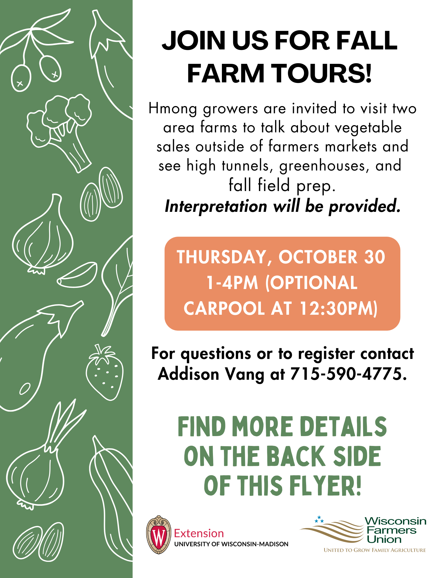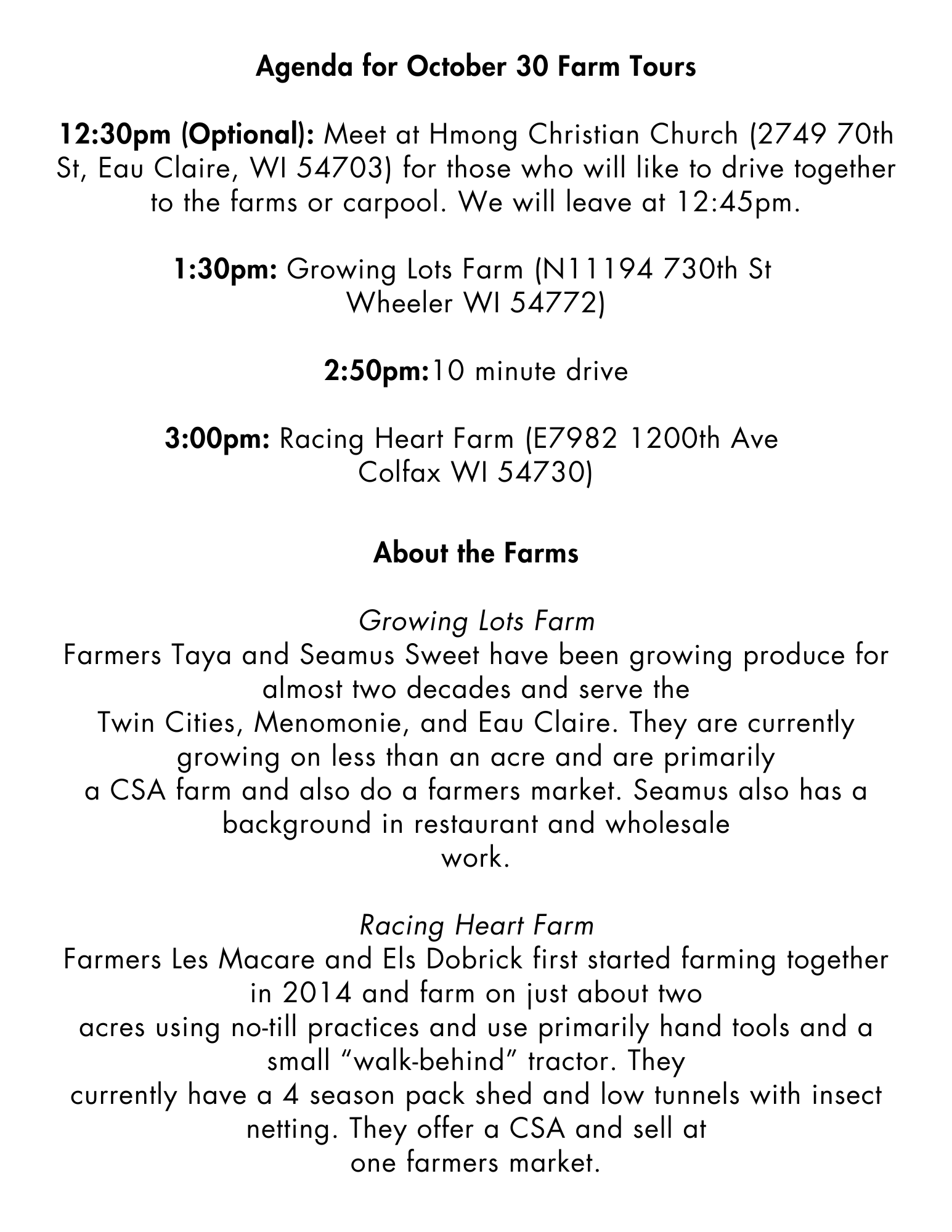 Chippewa Valley Farm Tour for Hmong Speaking Farmers Written by ADDISON VANG Posted on October 21, 2025 Share Share:Share on FacebookShare on X (Twitter) Share via EmailCopy LinkCopied! https://www.racingheartfarm.com https://www.growinglots.com Home