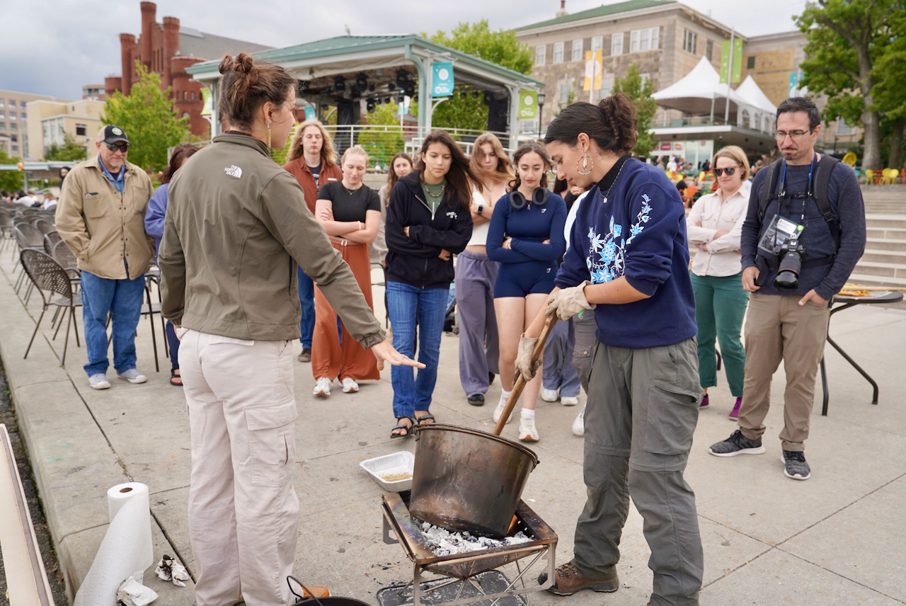 Corn braiding and manoomin parching on the Memorial Union Terrace